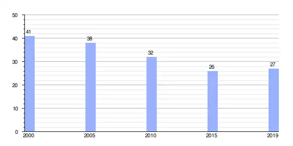 | Gráfica de evolución demográfica de Amoexa (aldea) entre 2000 y 2019 |