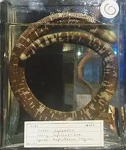 Su piel es negruzca con manchas blancas. Mide entre 45 y 50 cm de longitud. Carece de extremidades. Su cabeza es afilada y su cráneo grueso, adaptados para excavar. Sus ojos son muy pequeños, ocultos bajo escamas transparentes.
