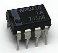 ![]() Amplificador operacional modelo LM741CN de National Semiconductor con encapsulado plástico DIP | ||