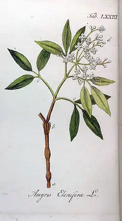 - Amyris sylvatica - Cuabilla de Cuba o Resina elemi de las Antillas o Goma de limón en las Antillas[4]