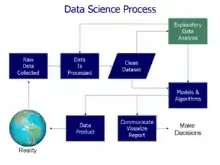 Se pueden aplicar fórmulas o modelos matemáticos (conocidos como algoritmos) a los datos para identificar relaciones entre las variables; por ejemplo, utilizando correlación o causalidad.[19][20] En términos generales, se pueden desarrollar modelos para evaluar una variable específica basada en otras variables contenidas en el conjunto de datos, con algún error residual dependiendo de la precisión del modelo implementado (por ejemplo, Datos = Modelo + Error).[21] [22]