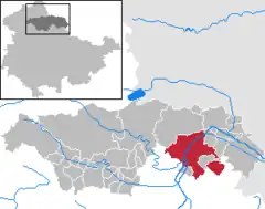 Se ubica en el sureste del distrito, junto a la carretera E71, unos 30 km al noreste de Erfurt.[4]