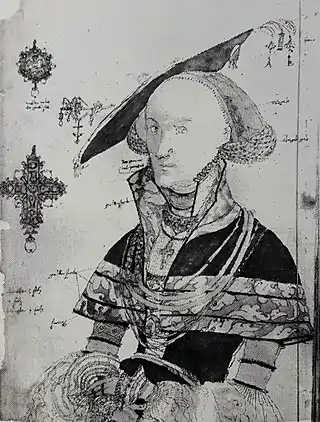 ![]() Estudio para un retrato de Ana de Brunswick-Luneburgo por Lucas Cranach el Viejo, ca. 1545. | ||