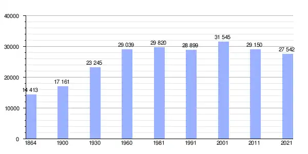 | Gráfica de evolución demográfica de Anadia entre 1864 y 2021 |