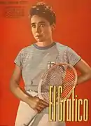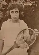 Analía Obarrio en la tapa de la revista El Gráfico del 23 de mayo de 1925. Puede leerse: "Señora Ana Lía Obarrio de Bilbao Aguirre, joven y excelente jugadora argentina que ha vuelto a las canchas con gran entusiasmo, desempeñándose acertadamente en los recientes torneos disputados en el Buenos Aires Lawn Tennis".