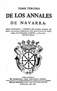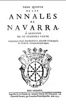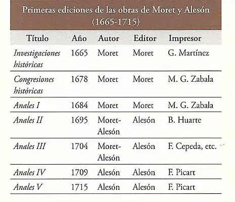- De Moret, José; Aleson, Francisco (1988). Dpto. de Educación y Cultura, ed. Anales del Reino de Navarra. 5 tomos. Pamplona: Gobierno de Navarra. ISBN 978-84-235-0817-4. Consultado el 24 de abril de 2019.