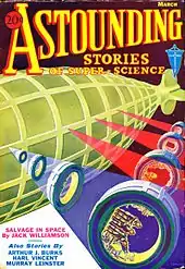 Portada del número de marzo de 1933 de Astounding, obra de Wesso, pintado originalmente para ilustrar Triplanetary, de E. E. Smith.