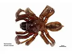 Aname mainae es una especie de araña del género Aname, familia Nemesiidae. Fue descrita científicamente por Raven en 2000.[1]