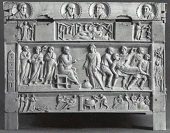 Aunque el suceso no suele aparecer en representaciones artísticas, es el tema de uno de los cartones de Rafael y también se ve en el relicario del siglo IV conocido como cofre de Brescia, ambos ilustrados en este artículo. También se muestra en una pintura de la década de 1590 de Ambrosius Francken el Viejo.