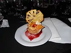 El término "piña" se adoptó por su semejanza con el cono de una conífera; la palabra ananá es de origen guaraní, del vocablo naná naná, que significa «perfume de los perfumes». Ananas es una latinización que deriva de la anterior.