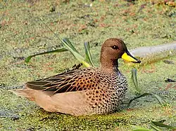 - BirdLife International (2012). «Anas flavirostris». IUCN 2012.2 (consultado el 7 de agosto de 2012) (en inglés). Archivado desde el original el 14 de noviembre de 2012. Consultado el 7 de agosto de 2012.
