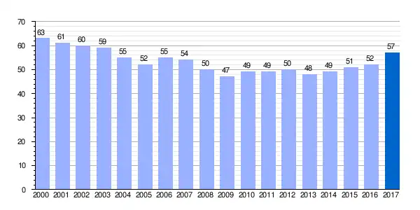 Gráfica de evolución demográfica de Anda[1] entre 2000 y 2017