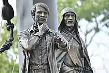 Monumento a Tarkovski en Súzdal.[14] A la izquierda, el director; a la derecha, Anatoli Solonitsyn como Andréi Rubliov en la película.