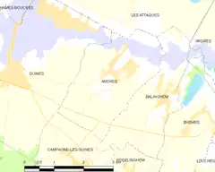 Andres es una población y comuna francesa, situada en la región de Norte-Paso de Calais, departamento de Paso de Calais, en el distrito de Calais y cantón de Guînes.