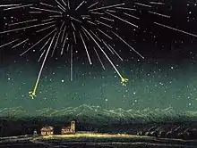 El primer avistamiento conocido de las Andrómedidas fue el 6 de diciembre de 1741, sobre San Petersburgo, Rusia. En 1798, 1825, 1830, 1838 y 1847 se produjeron más lluvias fuertes. Las Andrómedidas produjeron exhibiciones espectaculares de varios miles de meteoros por hora en 1872 y 1885, como resultado del cruce de la Tierra por la corriente de escombros del cometa. Schmidt, observando desde Atenas, dijo que la lluvia de 1872 estaba compuesta principalmente por meteoros débiles (de magnitud 5 a 6) con trenes " anchos y parecidos a humo " y una coloración predominantemente anaranjada o rojiza. [1] En Inglaterra, Lowe estimó que la misma lluvia produjo al menos 58.600 meteoros visibles entre las 5:50 y las 22:30 horas, observó que los meteoros eran mucho más lentos que las Leónidas y notó ruidos " como disparos muy distantes " varias veces al noroeste. [2] En Birmania, la lluvia de 1885 fue percibida como un presagio fatídico y, de hecho, fue seguida rápidamente por el colapso de la dinastía Konbaung y la conquista por Gran Bretaña. [3]