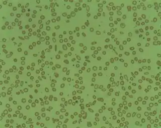 ![]() La microcitosis es la presencia de glóbulos rojos más pequeños de lo normal. El glóbulo rojo adulto normal tiene un diámetro de 7,2 µm. Los microcitos se observan con frecuencia en la hipocromía en la anemia por deficiencia de hierro, el rasgo de talasemia, la anemia sideroblástica congénita y, a veces, en la anemia de enfermedades crónicas. | ||