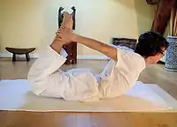 | dhanurāsana | dhanu: ‘arco’ | postura del arco | ![]() Dhanurāsana o «postura del arco» |