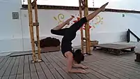 | sālamba śīrṣāsana | sā: ‘con’; lamba: ‘apoyo’; śīrṣa: ‘cabeza’ | postura apoyada sobre la cabeza | ![]() Sālamba śīrṣāsana o «postura sobre la cabeza’ | |