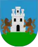 En campo de azur, una torre de oro sumada de un brazo armado de plata con una espada desnuda en su mano del mismo metal; cortado de oro, un lobo pasante de sable.[1] |