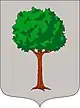 En campo de plata, un árbol de sinople, sobre ondas de azur y plata. Encima del árbol un águila de sable coronada de oro y flanqueada por una estrella de ocho puntas.[11] |