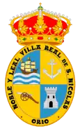 En campo de sinople, campaña de ondas agitadas de mar de azur y plata, y brochante sobre todo, dos remos de oro puestos en aspa, surmontados de un lis del mismo metal.[1] |