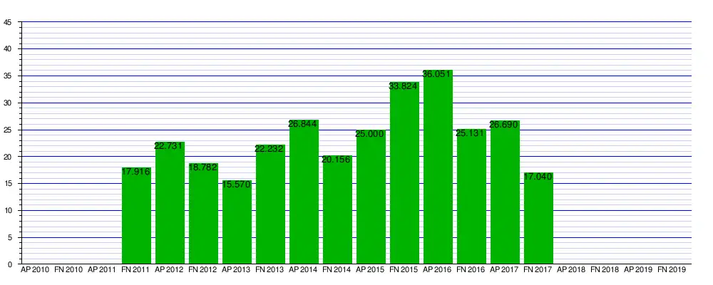 | 2017 Apertura | 236.015 | 10 | 23.602 | 103.571 | 3 | 34.524 | 84.264 | 3 | 28.088 | 40.450 | 1 | 40.450 | 464.300 | 17 | 27.312 |