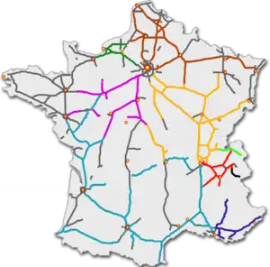 | Autoroute du Sud / Autoroute du Soleil | París - Lyon | 455 km | Peaje | |
