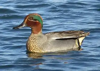 | Anas crecca | Cerceta común | África, Eurasia y Norteamérica | E: 53 - 59 | ![]() | |||