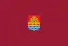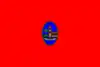 Bandera rectangular, de proporción 2:3, sobre un paño rojo, una cruz azul, cuya anchura es de 1/5 del ancho de la enseña, que va de extremo a extremo, y cargada de una cruz griega flordelisada blanca cuyos brazos miden 4/5 y su anchura 1/10, ambas medidas con respecto al ancho de la bandera.[8] |