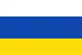 Bandera rectangular, de proporción 2:3, compuesta por tres franjas horizontales, blanca, azul y amarilla, cuyos anchos respectivos son 60 cm., 80 cm. y 60 cm.[15] |