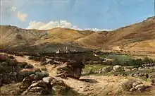 ![]() | José Giménez Fernández Paisaje hacia 1870 óleo sobre lienzo | José Giménez Fernández (1846-1873): precoz pintor madrileño con una prometedora carrera de paisajista, muerto a los 27 años, uno de los más atentos a las enseñanzas de Haes. Tuvo un hermano mayor, Federico, también pintor. El Museo del Prado recibió un importante legado familiar a finales del siglo XIX.[9] | |||||||||||