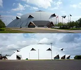 ![]() | ![]() | 134,1[62] | Norfolk Scope | Norfolk (Virginia), Virginia | 1968-1971 | Ingeniero consultor Pier Luigi Nervi. Mayor cúpula de hormigón armado en 1971-1976, 2000–presente. | H.A. | — | AmN | |