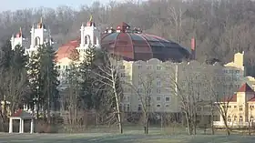 ![]() | ![]() | 36,0[35] | Abadía de San Blas | St. Blasien, Baden-Württemberg | 1772-1783 | Monasterio benedictino. Levantada utilizando una cimbra completa de madera construida sobre el tambor. Obra de Pierre Michel d'Ixnard. Mayor cúpula en madera en 1781-1957. Cuarta cúpula más amplia in Europa, en el momento de su construcción. | M | — | E | |