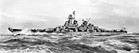 - Armamento: 9 × 406 mm, 20 × 127 mm, 80 x 40 mm AA, 49 x 20 mm AA (1983 modificados misiles 32 x Tomahawk y 16 x Harpoon y 4 x Phalanx CIWS)