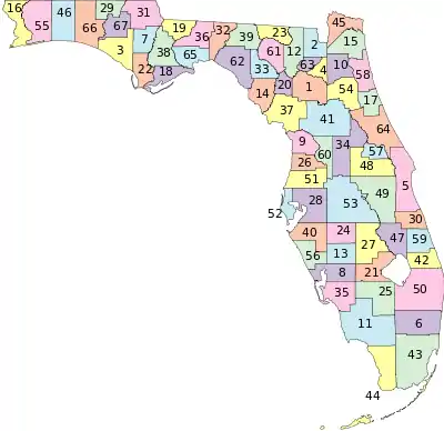 Wikimedia Commons alberga una categoría multimedia sobre Condados de Florida.- Mapa; al seleccionar un condado se obtiene información sobre él
