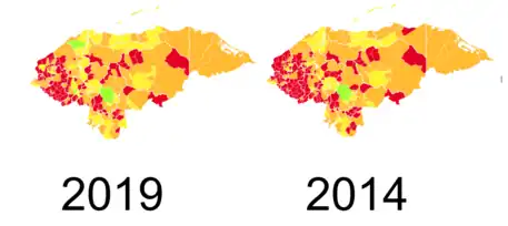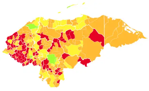 | Erandique | 0,540 | 0,529 | Bajo | 74.2 | 9.0 | 4.1 | 2,477 |