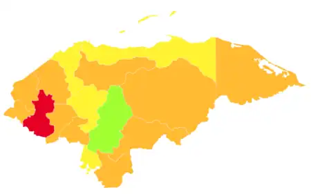 | Copán Ruinas | 0,517 | 0,506 | Bajo | 73.4 | 8.4 | 3.4 | 2,526 |
