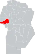 | Calamuchita | San Agustín | cerca de 1815 | Límites fijados en 1883 por ley provincial 927 y modificados el 15 de agosto de 2002.[5] | 54 730 | 4642 | 11.79 | Cañada de Álvarez, Cóndores, Molinos, Monsalvo, Reartes, Santa Rosa y Río de los Sauces | 23 | ![]() | 14007 |