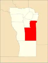| Gobernador Dupuy | Buena Esperanza | 14 343 | 18 323,7 | 0,8 | 2 municipios 7 comisiones municipales | ![]() | 74042 |