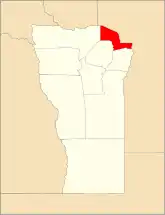 | Juan Martín de Pueyrredón | San Luis | 261 697 | 13 569,0 | 19,3 | 5 municipios 8 comisiones municipales | ![]() | 74056 |