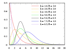 - La distribución de Erlang, caso especial de la gamma con un parámetro k entero, desarrollada para predecir tiempos de espera en sistemas de líneas de espera.