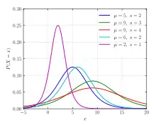 - La distribución logística, descrita por la función logística.