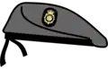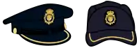 Gorra de plato y tipo béisbol (representación y trabajo), gorro femenino (representación), gorra de la UIP, gorro de fronteras, gorro de caballería y boina de unidades especiales: GEO (granate), GOES (azul), TEDAX (negra), Casa Real (azul oscuro), SMA/SAP (azul oscuro), UIP (gris).