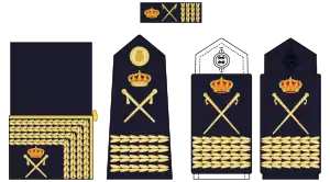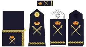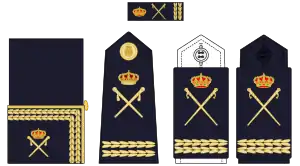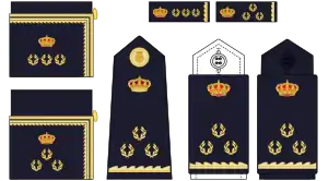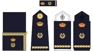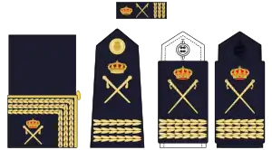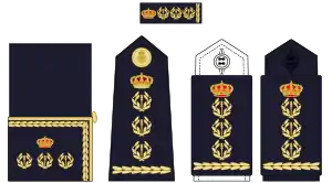 En cada categoría se representa como irían colocadas en las diferentes uniformidades. Galleta para unidades especiales, metálicas en las palas del uniforme de gala, en manguitos tanto en el polo de servicio como en la camisa blanca de gala, bordadas en las bocamangas del uniforme de etiqueta.
