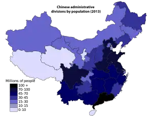 Esta es una lista de las divisiones administrativas chinas en orden de su población total residente. Incluye todas las provincias, regiones autónomas, municipios de control directo y regiones administrativas especiales controladas por la República de China (1912-1949) o la República Popular China (1949-actualidad).