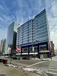 - Harger, Jim (28 de junio de 2017). «50 years later, parking lot will give way to $72M office and hotel tower». MLive.com. Consultado el 1 de octubre de 2017.