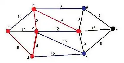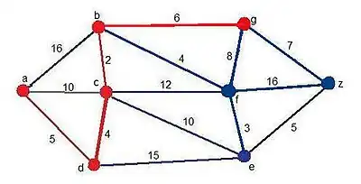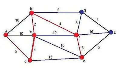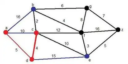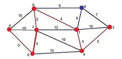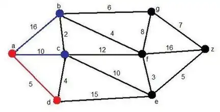 El siguiente ejemplo se mostrara como se desarrollará con el fin de encontrar el camino más corto desde a hasta z: