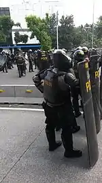 | Nuevo traje tipo ‘Robocop’ | Equipo antimotín | Kit completo. Overol antiflama, casco con visor a prueba de niebla, guantes anticortes, pasamontaña antifuego, protectores en todo el cuerpo, escudo rectangular.[6] |