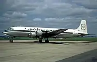 transporte de largo alcance | Los primeros Tres DC-6 son incorporados en 1966 tras la baja de los mismos por parte de Aerolíneas Argentinas que los operaba desde el año 1950. Primer avión de transporte de la fuerza con cabina presurizada, son asignados al Grupo 2 de Transporte de la 1.ª Brigada Aérea. En diciembre de 1972, realiza su último vuelo un DC-6, siendo disuelto el escuadrón tras 757 horas de vuelo. | |