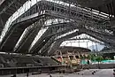 Gran techo en franjas los cuales ascienden en distintos ángulos. Esta forma irregular cubrió de manera compartida los nuevos coliseos de combate, voleibol y gimnasia
